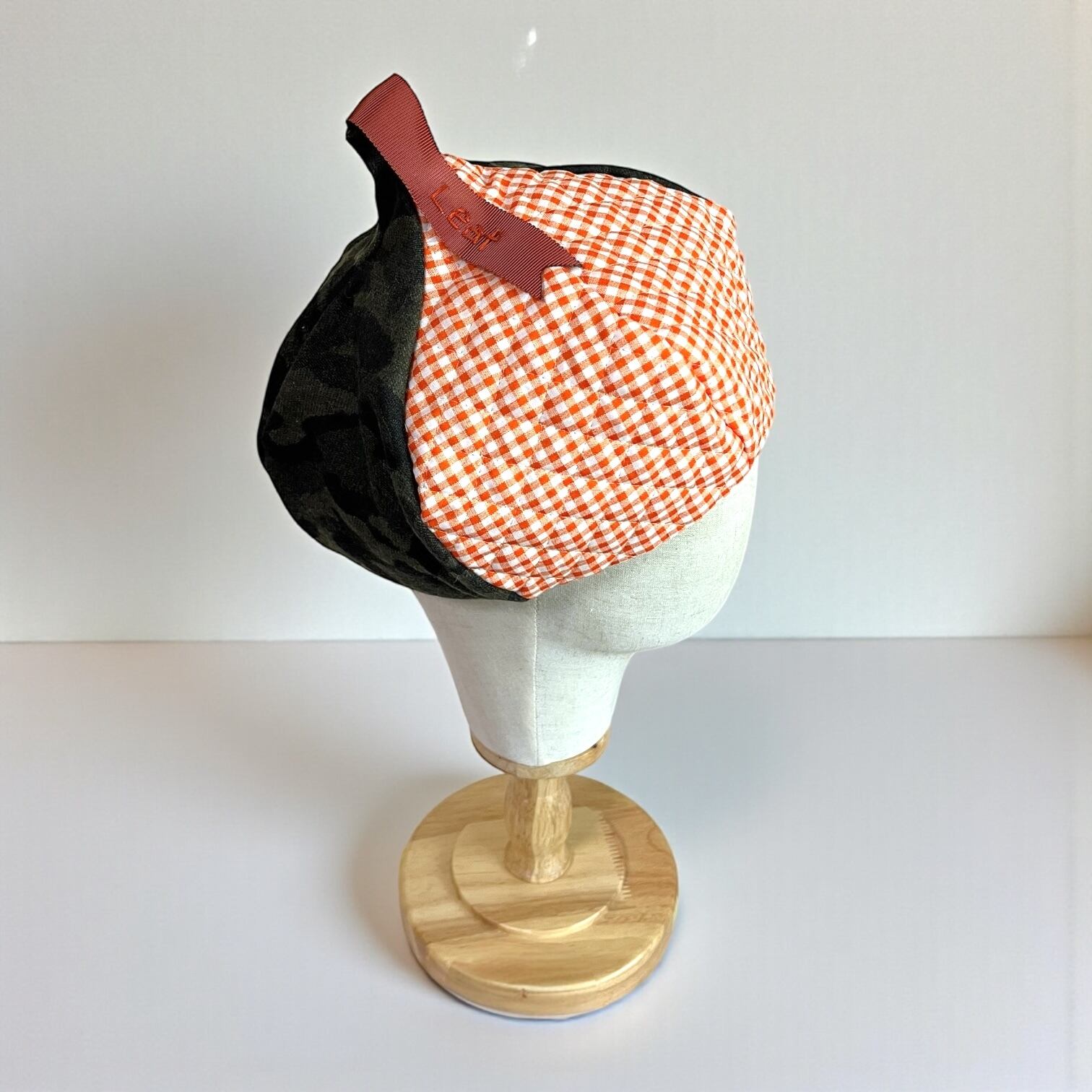 カラー: カーキxオレンジチェック、リボン オレンジ