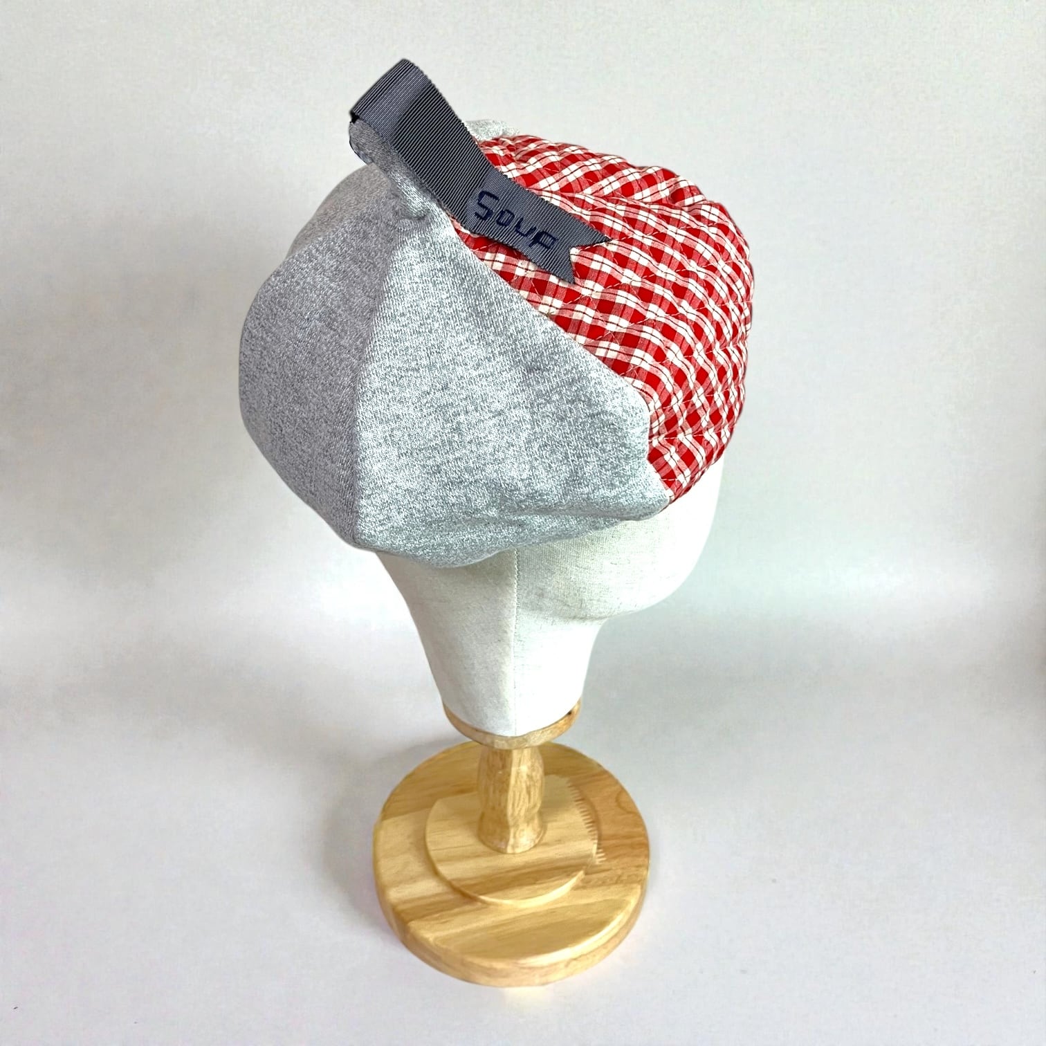 杢グレーのスウエット生地とギンガムチェックのキルティング生地をmixした